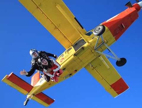 對於沒有經驗的跳傘者來說,雙人跳傘是最快、最簡單和最安全的方式,可以享受從在13000英尺的高空飛機上跳下、以 200 公里/小時的速度自由落體並在降落傘下安全降落到地面的快感。 我們的設備包括供乘客和教練共享的安全帶和降落傘系統,因此您可以簡單地享受教練控制一切帶來的快感體驗。