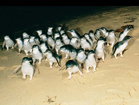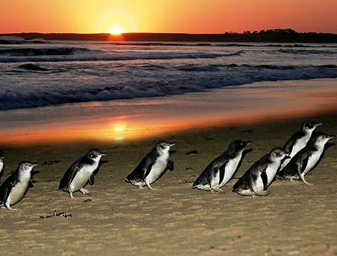 隨後抵達諾比司角中心(The Nobbies Centre),這裡是菲利普島西南端壯觀的一岬,在這裡你可以領略絕佳的美景和奇妙的生物。 (約20分鐘)每當日落黃昏後,驚喜就會出現。 一隻只嬌小的企鵝從海裡遊回海岸邊。 從觀景台觀賞小企鵝搖搖擺擺的走過沙灘,回到沙丘中的巢穴。 (約45分鐘)觀賞小企鵝歸巢後,搭車返回墨爾本。 (約2小時回城)