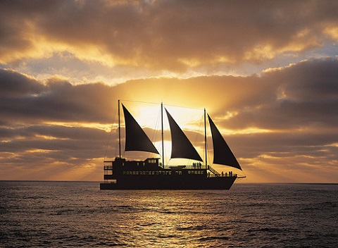 夜幕降臨時,在餐廳裡享用由船上廚師新鮮奉上的美味自助餐。然後與同伴閒聊,觀看滿天星辰,最後回到船艙休息。