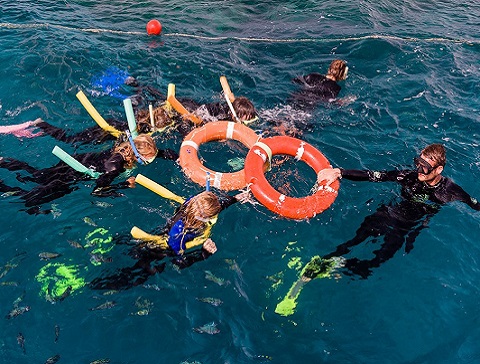 在指定的巨大浮潛區浮潛,既可以保證遊客安全又可以保護珊瑚礁的生態環境。浮潛區還有救生員守望保護。
