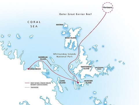 *從白日夢島和長島出發的遊客先乘渡輪到漢密爾頓島再搭乘我們的遊輪。