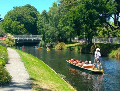 撐篙泛舟 ,技巧嫻熟的船夫撐船帶領您飽覽基督城浪漫的城市風光。在春夏兩季,會看到陽光安靜地灑在波光粼粼的河面上,小鴨子歡樂地在水中嬉戲;而在秋天和冬天,則能欣賞到迷人的水上風光。