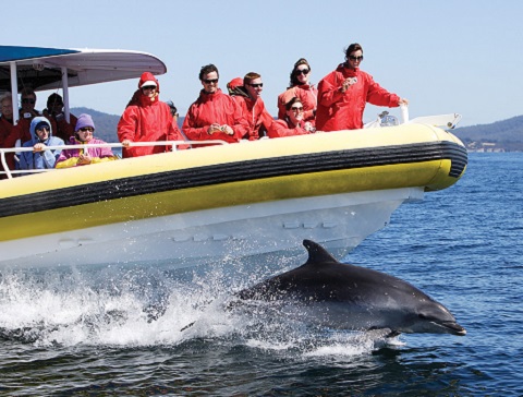 觀賞寬吻海豚的嬉戲是一個喜悅,他們急切地遊在我們的船邊,船上的互動和令人印象深刻的海豚雜技。