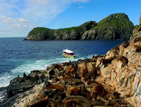 澳大利亞和新西蘭海豹的哺乳動物聚集在布魯尼島的南端,被稱為弗萊爾岩石海岸。全年可見的。