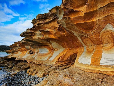 瑪利亞島位於塔斯馬尼亞州(Tasmania)以東的塔斯曼海(Tasman Sea),距離荷巴特(Hobart)約2小時車程。瑪麗亞島面積僅115.5平方公里。為了保護這個小島的自然生態,澳洲當局將島與其附近海域設置為瑪利亞島國家公園。而彩繪崖(PaintedCliffs)則位於瑪利亞島一處海灘的盡頭。其沙岩上的美麗圖案是地下水滲透多孔的沙岩,而留下的氧化鐵痕跡。這個具有天然彩色圖案的濱海沙岩峭壁,猶如大自然的畫作,在碧海藍天之間點綴一片繽紛。是當地著名賣點。