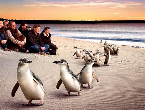 隨後抵達諾比司角中心(The NobbiesCentre),這裡是菲利普島西南端壯觀的一岬,在這裡裡你可以領略絕佳的美景和奇妙的生物。 (約 20 分鐘)每當日落黃昏後,驚喜就會出現。 一隻只嬌小的企鵝從海裡遊回海岸邊。 從觀景台觀賞小企鵝搖搖擺擺的走過沙灘,回到沙丘中的巢穴。 (約 45 分鐘)觀賞小企鵝歸巢後,搭車返回墨爾本。 (約 2 小時回城)