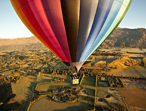 Sunrise Balloons 的熱氣球在皇后鎮和箭鎮之間的山谷中飛翔,你可以欣賞獨特地形的壯麗景色。我們飛在空中,距離地面6000英尺(約1800米)的高空中並隨風飄蕩時。你將會看到皇后鎮及周邊地區的360度全景,比如電影《霍比特人》的拍攝地、南阿爾卑斯山脈、瓦卡蒂普湖和新西蘭最美麗的高爾夫球場等。
