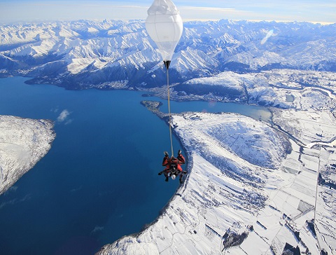 在飛機起飛前,我們的工作人員會幫助你佩戴好跳傘裝備,一名跳傘教練會做簡要的跳傘介紹。我們的飛機會帶你飛至瓦卡蒂普湖盆地(Wakatipubasin)上方,可以360度俯瞰壯觀的山脈和湖泊美景。在傘降區的正上方,你會和跳傘教練一同跳出機艙,感受長達60秒驚心動魄的自由下落。之後,跳傘教練會將降落傘打開,緩慢漂浮直至著陸。乘坐降落傘的飛翔時間大約為5分鐘。請為整個跳傘活動預留3小時的時間。