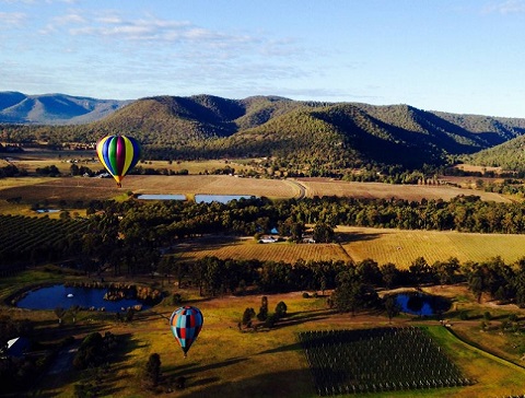 獵人谷的熱氣球,在風和日麗的早晨,在日出之時起飛, 以確保平緩的飛行.遊客要在破曉前1個小時, 相聚在彼得森的香檳大廈Peterson's Champagne House,corner of Broke Road and Wine Country Drive 位於Pokolbin,Cessnock 以北僅5分鐘。.